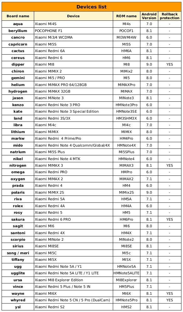 Где "yes" - на этих устройствах присутствует система антиотката.