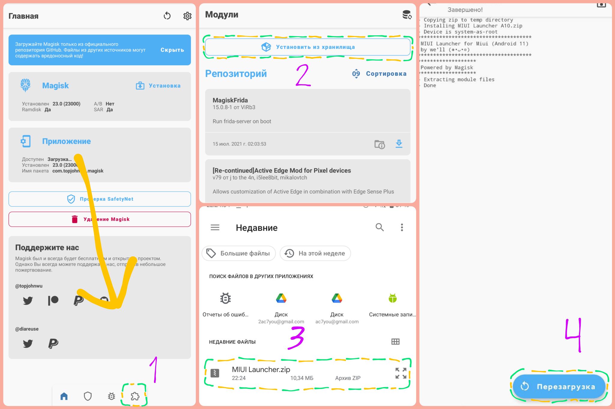 Скачиваем magisk модуль (колонка «Файлы»)